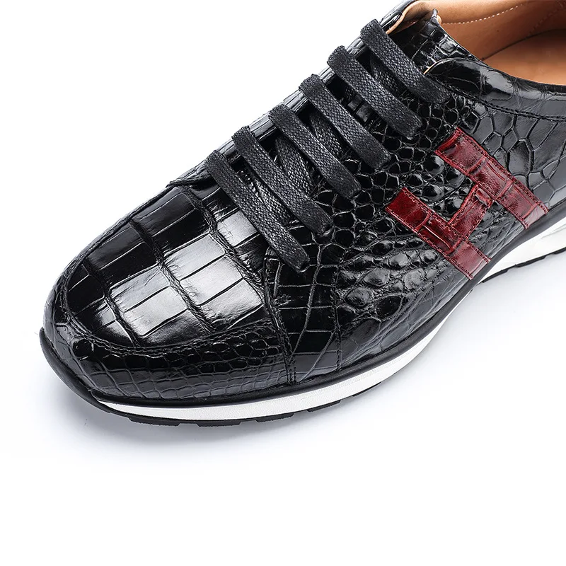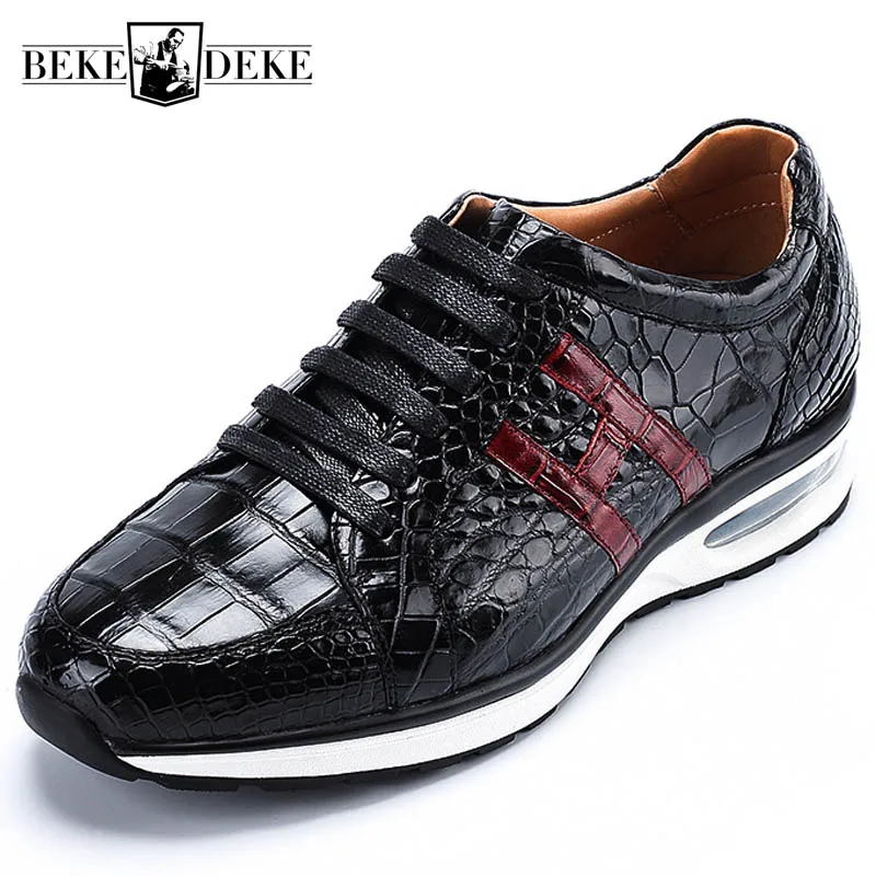 Black Genuine Leather Brand Casual Mens Sneakers Business Formal Crocodile Leather Shoes 2019 Lace
