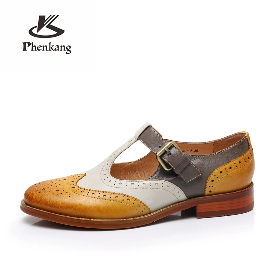 Yinzo Women sandals Flats Oxford Shoes Woman Genuine Leather Sneakers Ladies summer Brogues Vintage